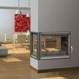Туннельная (сквозная) топка со стеклом слева встраивается в колонну или в торец межкомнатной перегородки так, чтобы можно было любоваться пламенем с трех сторон.